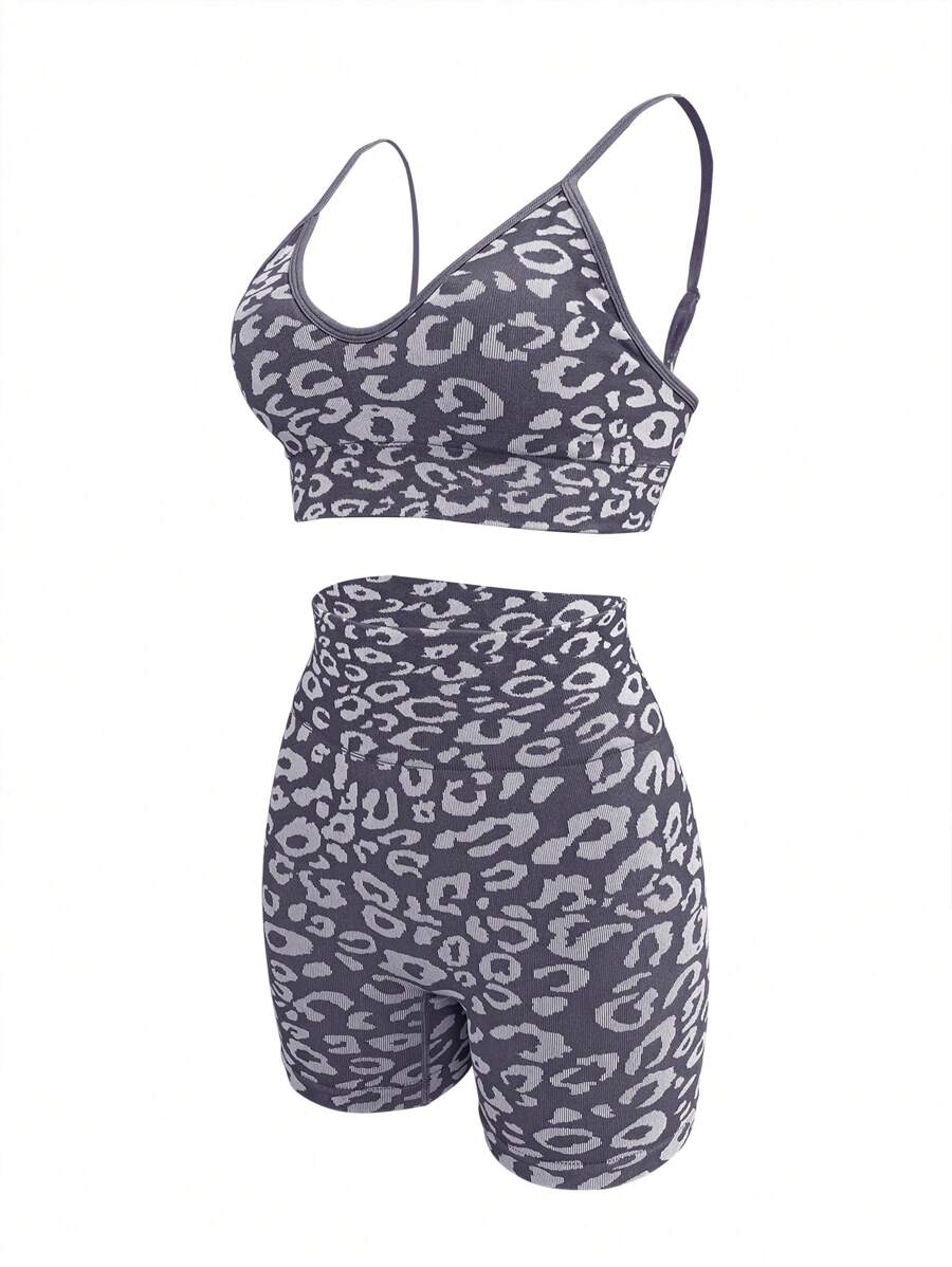 Leopard Print Wide Waistband Sports Set