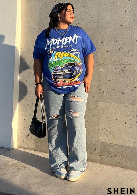 SHEIN SXY Letter & Car Print Tee