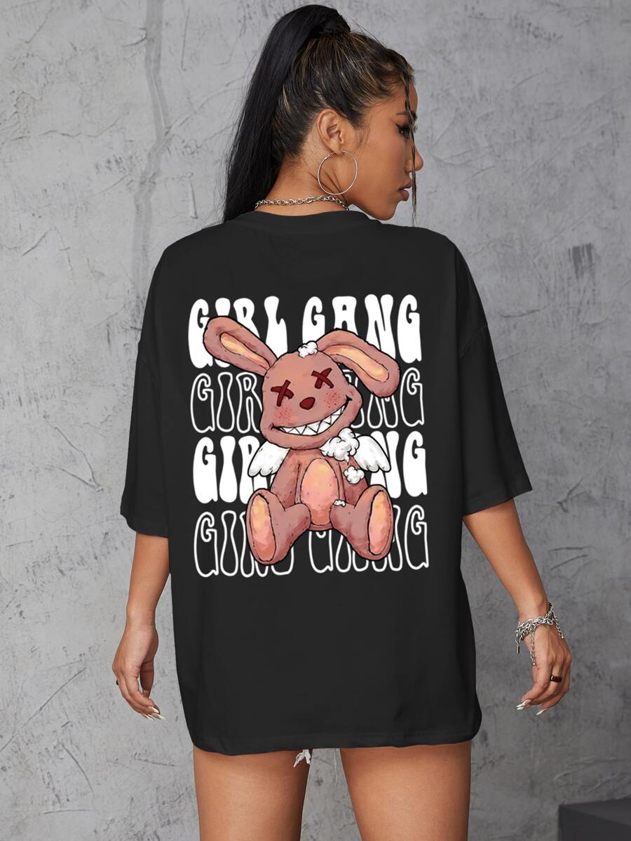 SHEIN Qutie Letter & Cartoon Graphic Drop Shoulder Tee