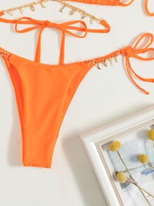 SHEIN Swim SXY Letter Decor Chain Linked Halter Bikini Swimsuit