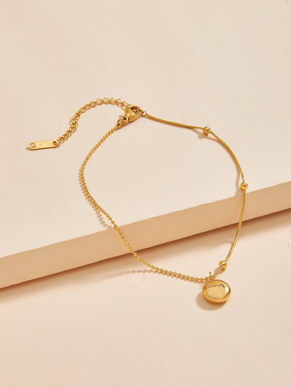 Letter Detail Round Charm Bead Decor Bracelet