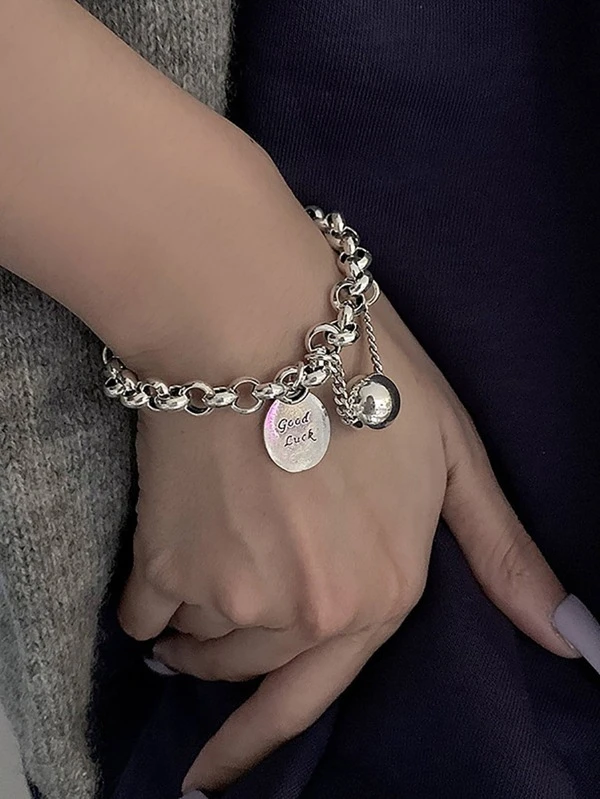 Letter Detail Round Charm Bracelet