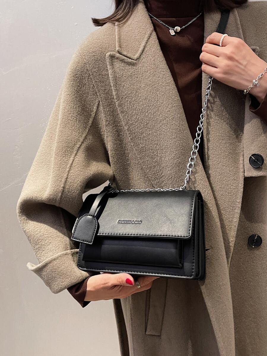 Letter Embossed Flap Chain Square Bag
