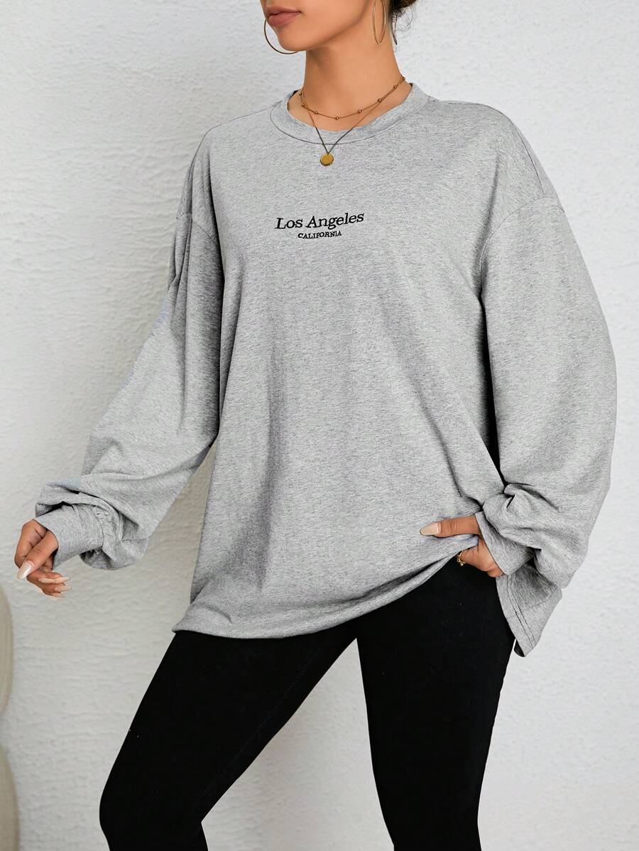 SHEIN EZwear Letter Embroidery Drop Shoulder Tee