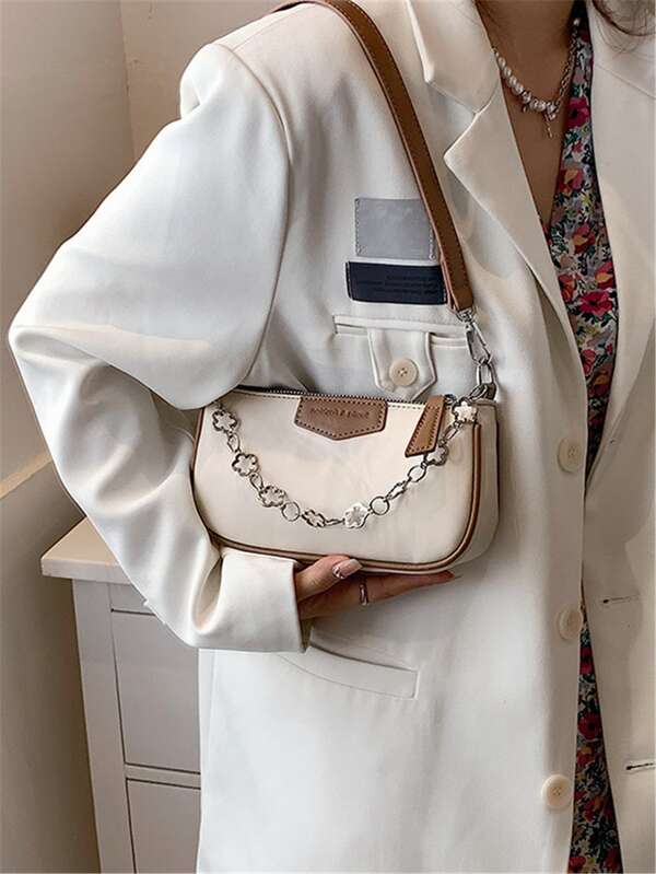 Letter Graphic Chain Decor Baguette Bag