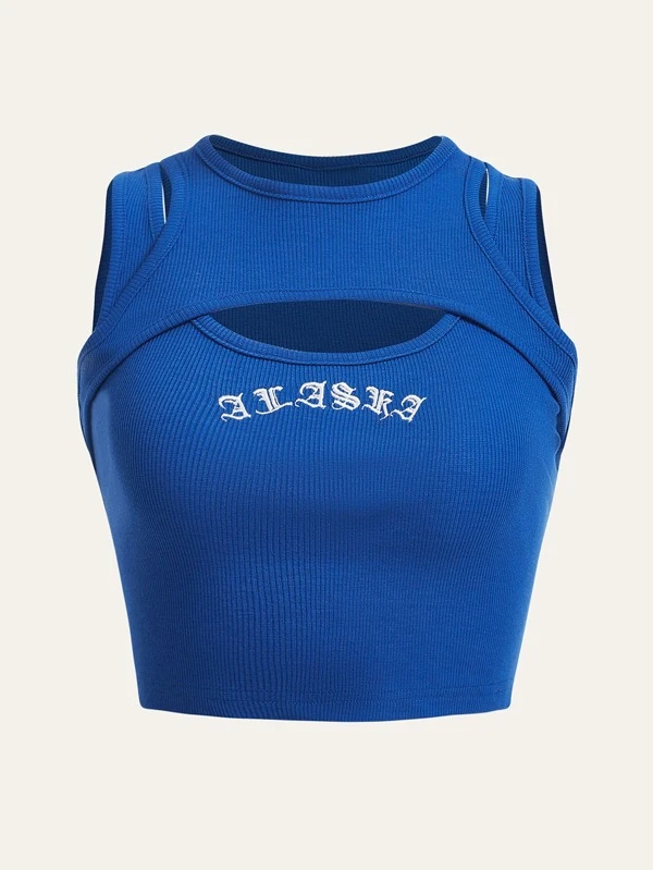 SHEIN Coolane Letter Graphic Cut Out 2 In 1 Tank Top