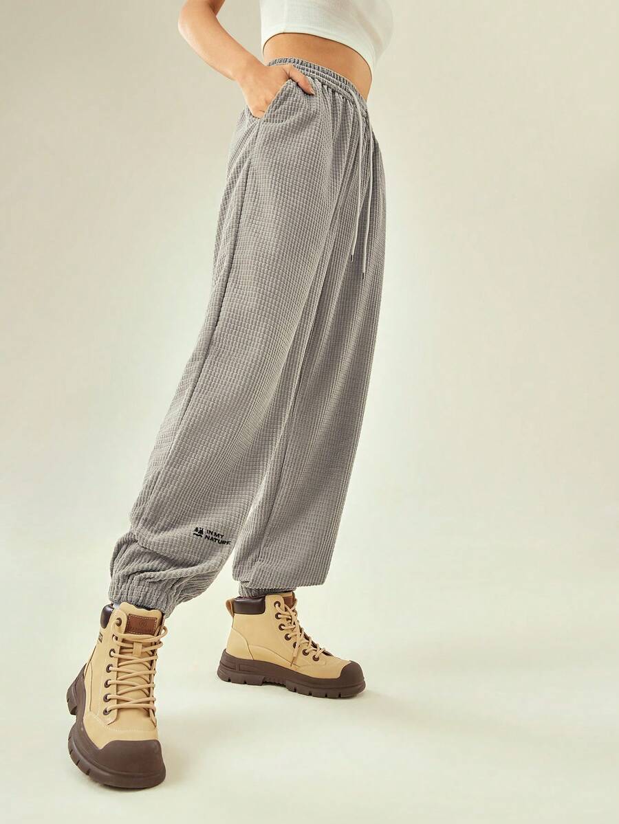 SHEIN In My Nature Letter Graphic Drawstring Waist Outdoor Sweatpants