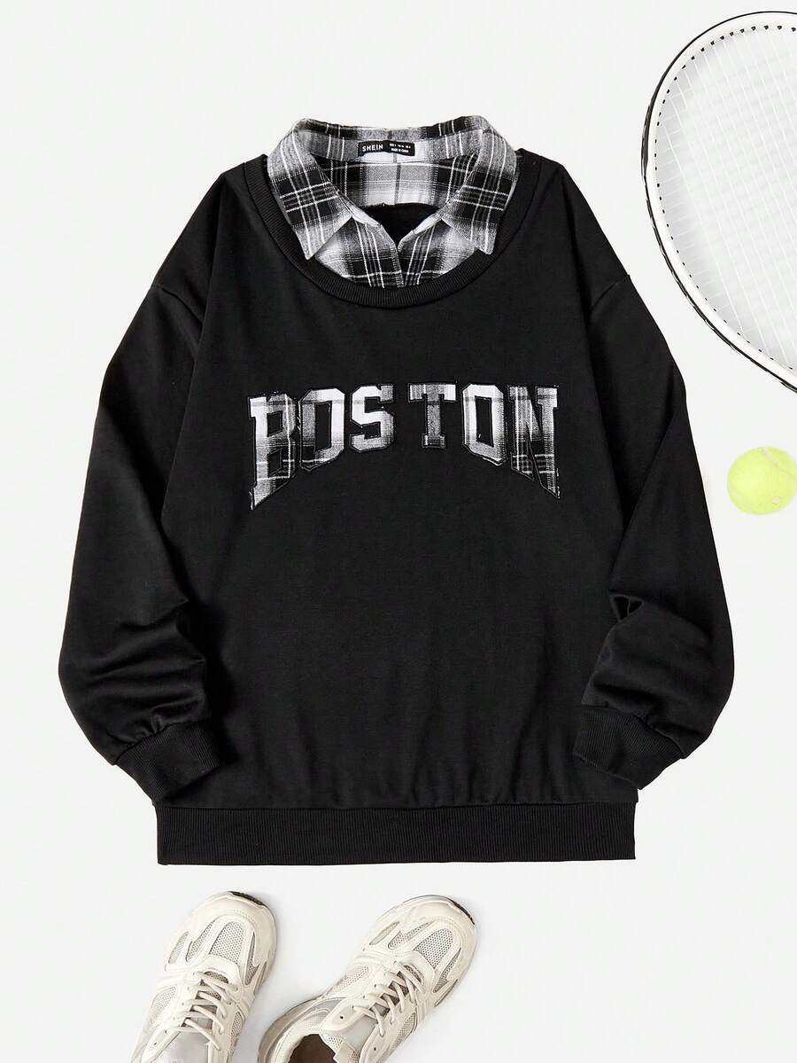 SHEIN EZwear Letter Graphic Drop Shoulder 2 In 1 Sweatshirt