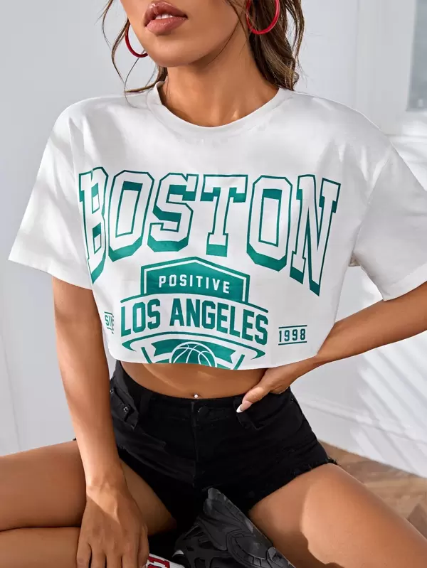 SHEIN EZwear Letter Graphic Drop Shoulder Crop Tee