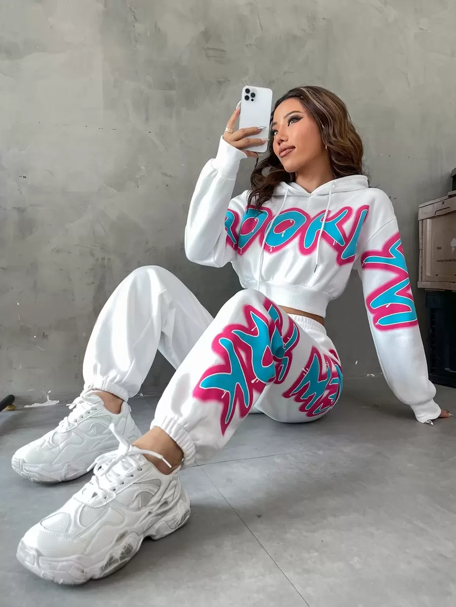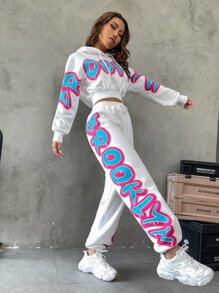SHEIN Coolane Letter Graphic Drop Shoulder Hoodie & Sweatpants