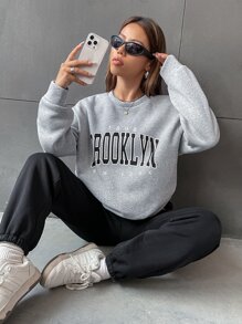 Letter Graphic Drop Shoulder Sweatshirt & Sweatpants