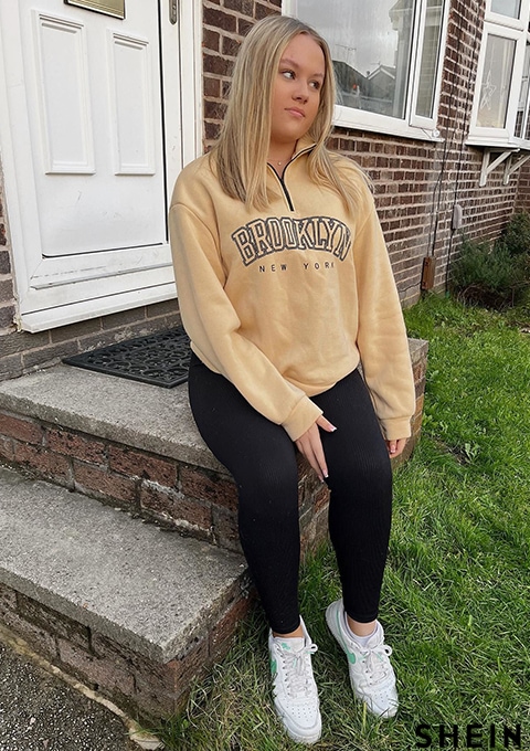 SHEIN EZwear Letter Graphic Half Zip Drop Shoulder Sweatshirt