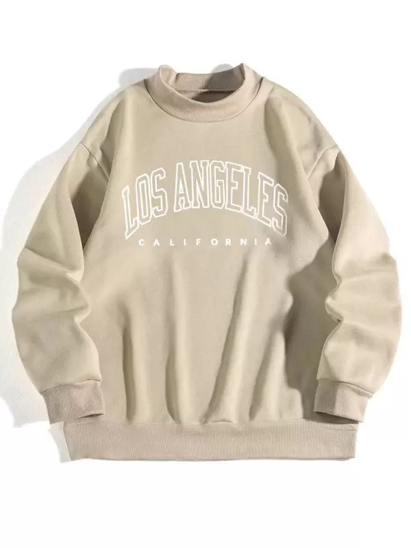 Letter Graphic Mock Neck Thermal Lined Hoodie