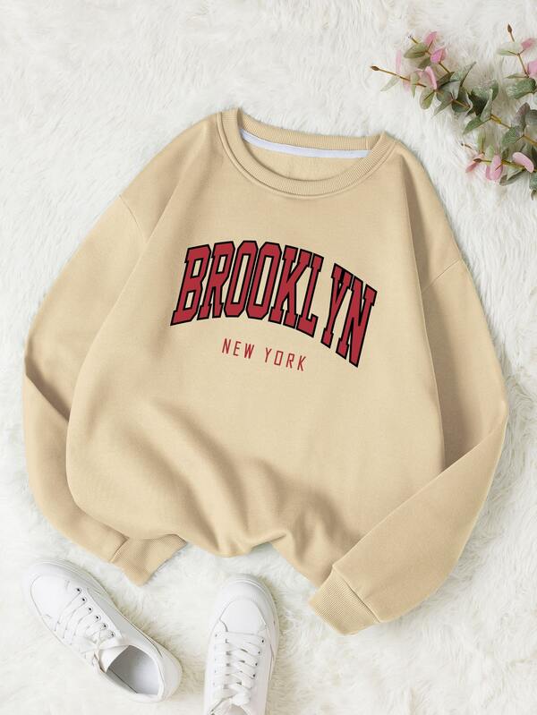 SHEIN Qutie Letter Graphic Thermal Lined Sweatshirt