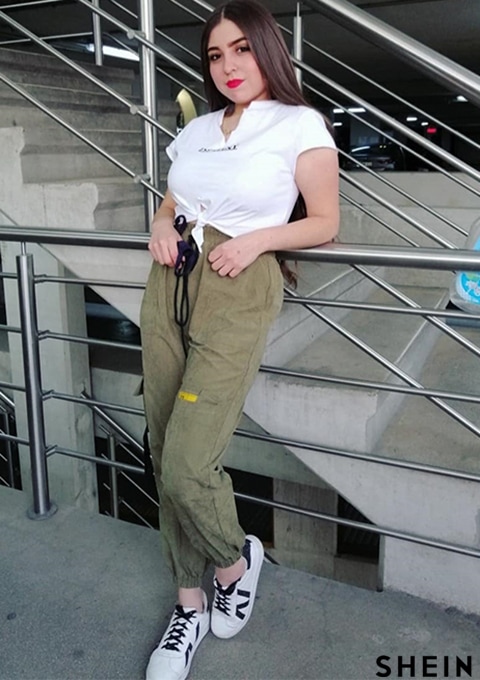 SHEIN Mulvari Letter Graphic Tie Hem Tee & Cargo Pants