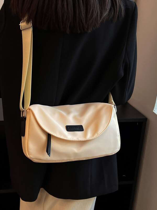 Letter Patch Flap Hobo Bag