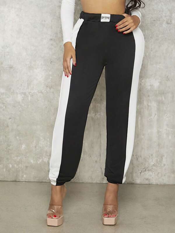 SHEIN SXY Letter Patched Detail Contrast Side Seam Sweatpants