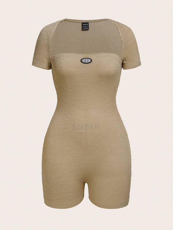 SHEIN Coolane Letter Patched Detail Unitard Romper