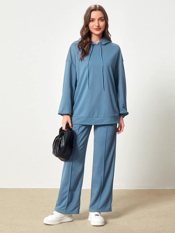 SHEIN Mulvari Letter Patched Drop Shoulder Drawstring Hoodie & Pants