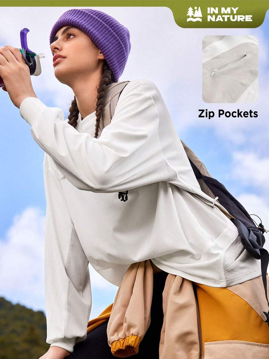 SHEIN In My Nature Letter Patched Drop Shoulder Split Hem Outdoor Tee