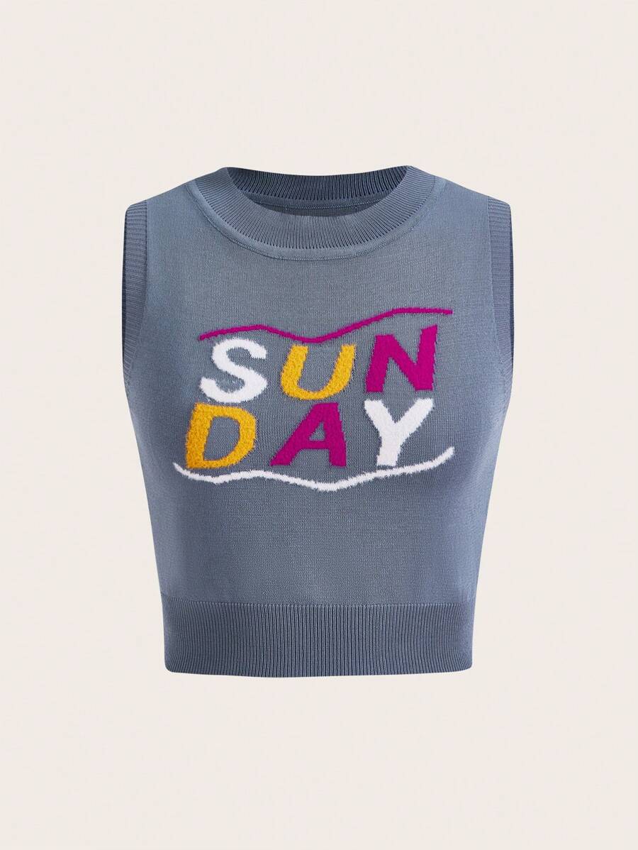 SHEIN MOD Letter Pattern Crop Tank Knit Top