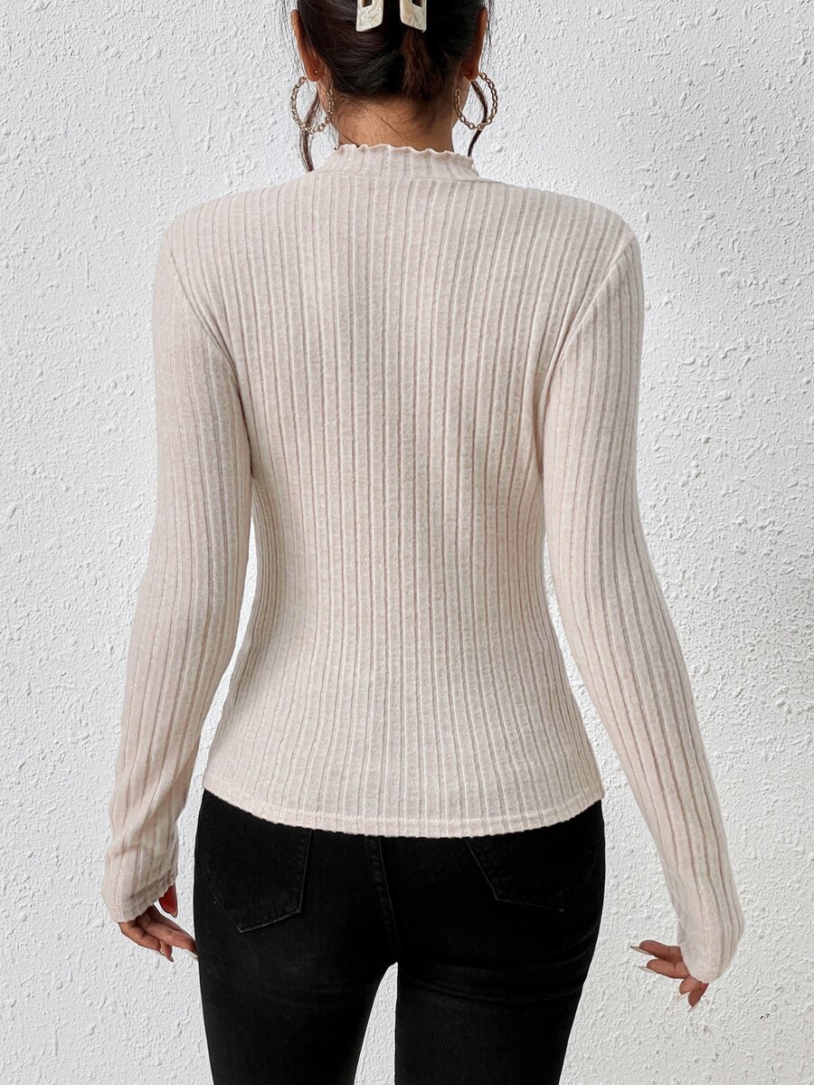 SHEIN Frenchy Lettuce Trim Mock Neck Tee