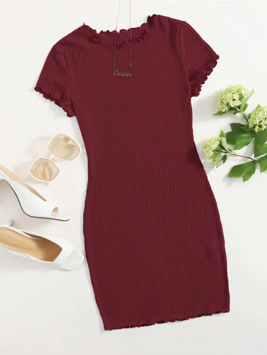 SHEIN EZwear Lettuce Trim Rib-knit Bodycon Dress