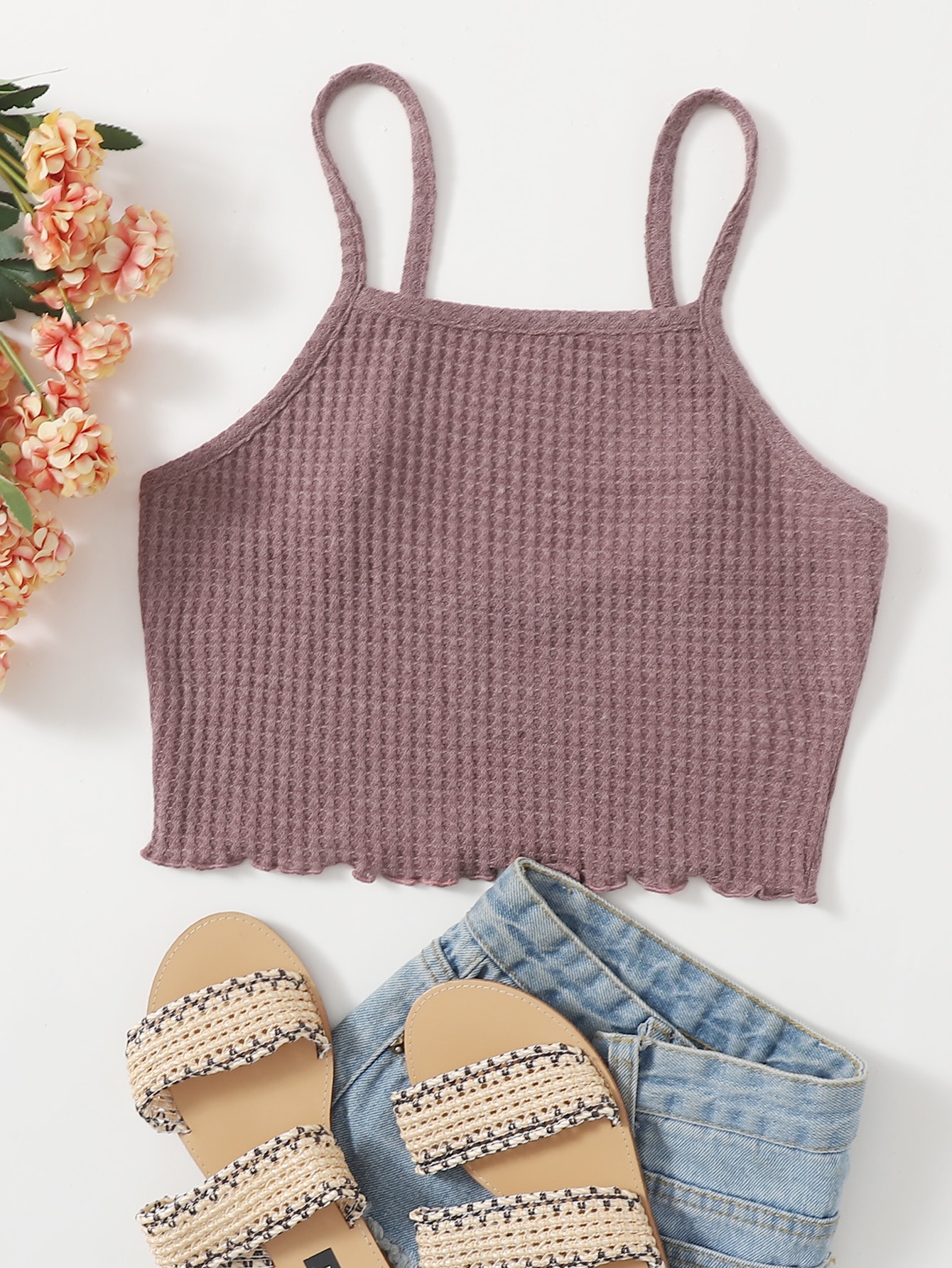 SHEIN EZwear Lettuce Trim Waffle Knit Cami Top