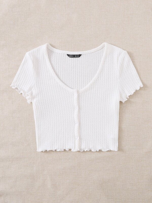 SHEIN Qutie Lettuce Trim Waffle Knit Tee