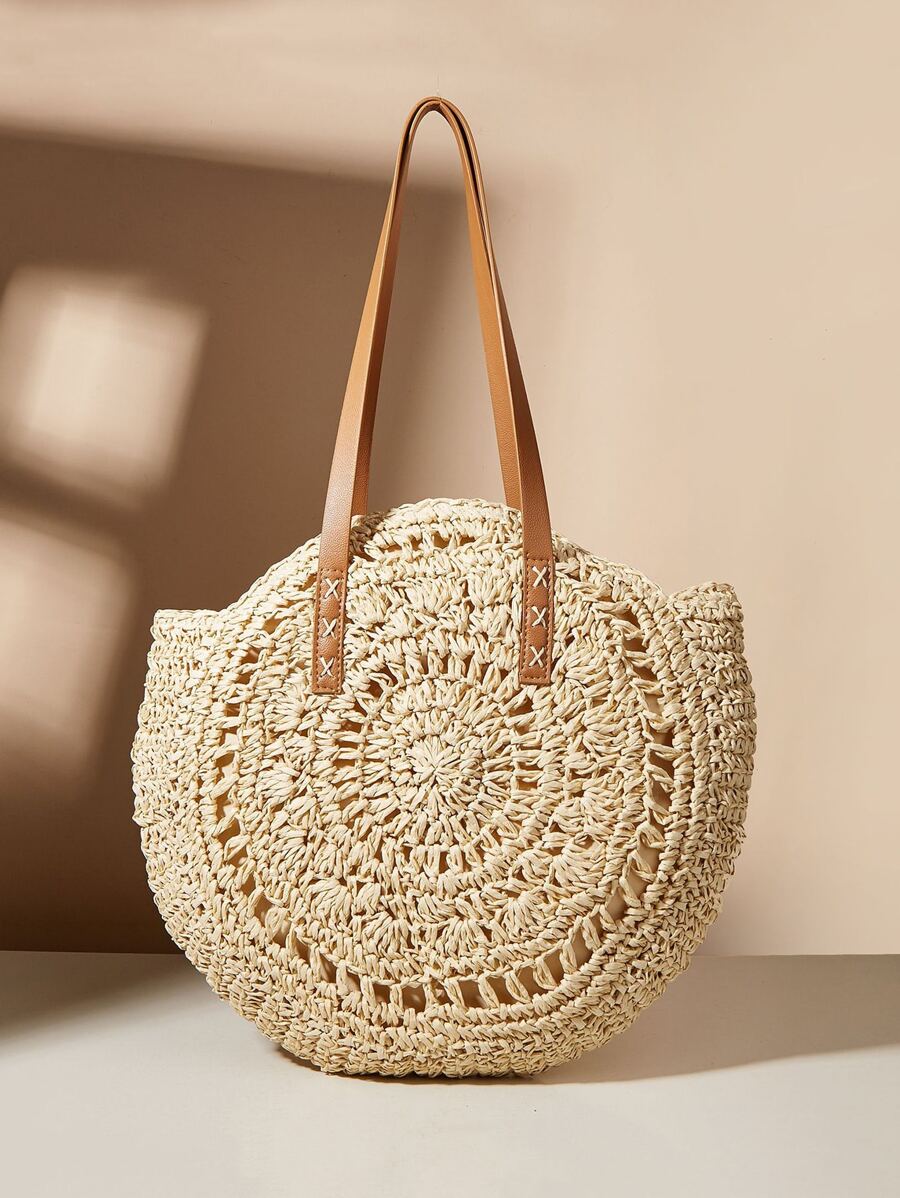 Lightweight, Portable Vacation, Knitting Bag, Straw Bag Hollow Out Straw Bag For Girls, Women, College Students For Autumn & Winter, Warm Winter, For Vacation, Holiday, Outings, Beach, For Fall, Winter Essential