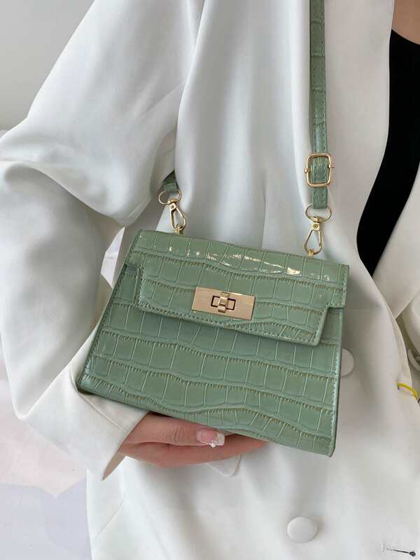 Lightweight,Business Casual 1pc Solid Color Crocodile Pattern Crossbody Bag For Teen Girls Women College Students,Rookies & White-collar Workers Perfect for Office,College,Work ,Business,Commute,Outdoors, Travel, Outings