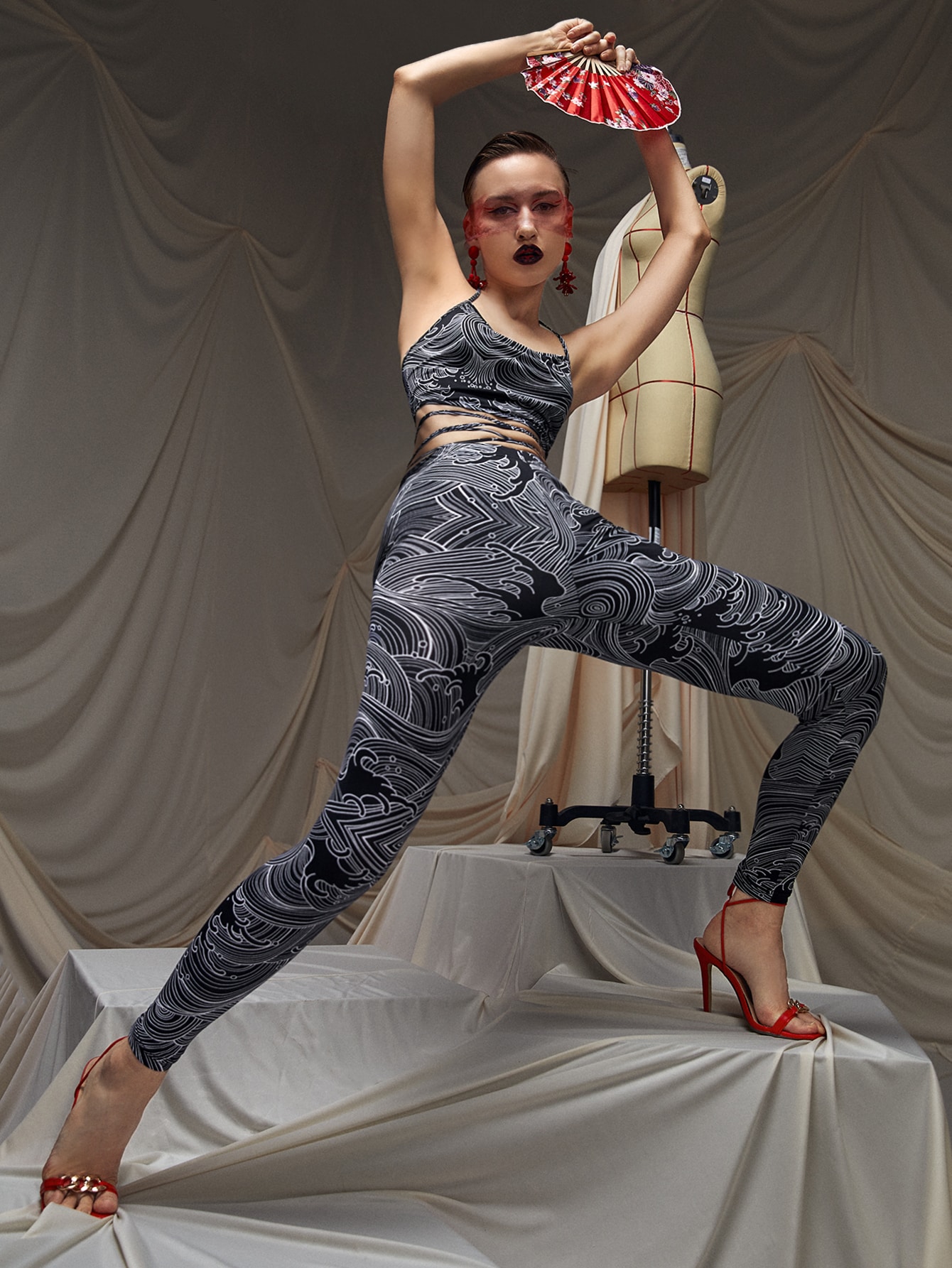 ALISMIND Line Waves Print Crop Cami Top & Leggings Set