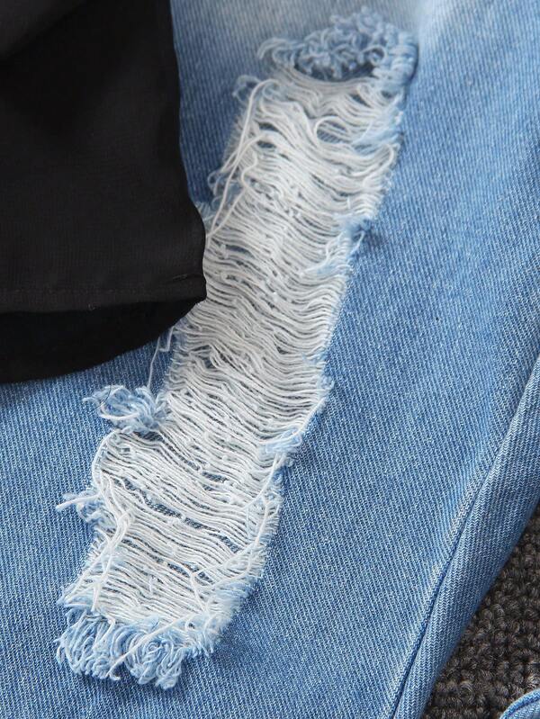 Little Girls' 3pcs Black Jacket + Distressed Jeans + Camisole Tank Top Set