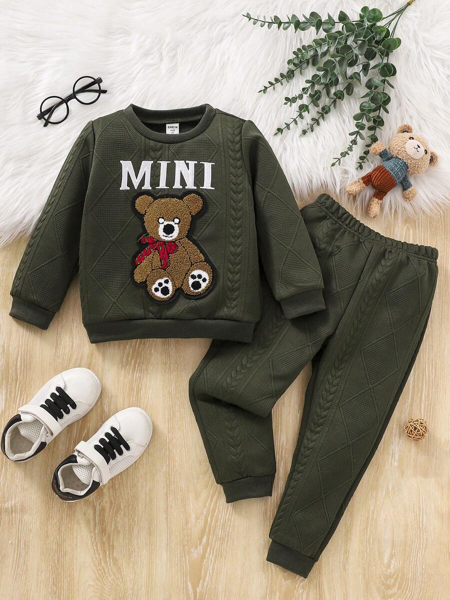 SHEIN Kids QTFun Little Girls' Bear Patch Top And Casual Pants Set