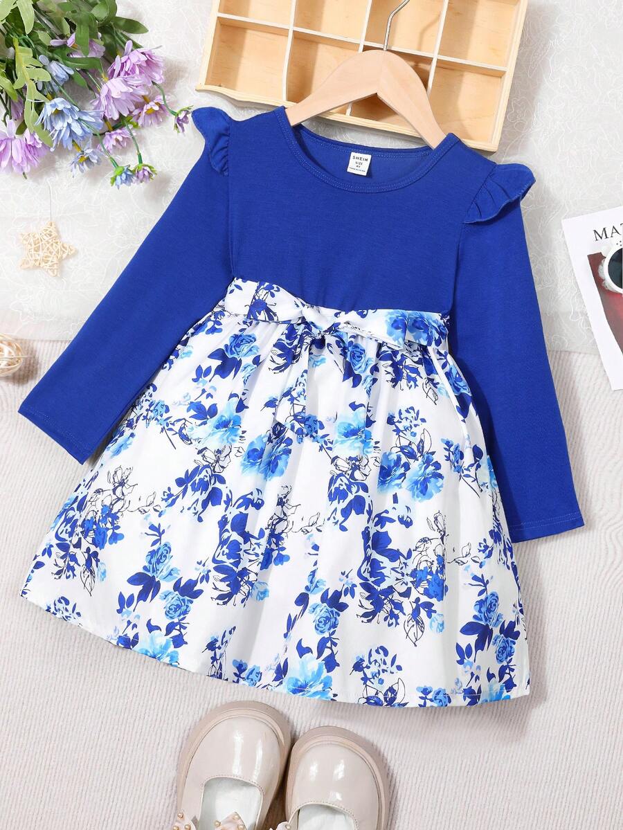 SHEIN Kids FANZEY Little Girls' Colorblock Floral Print Dress