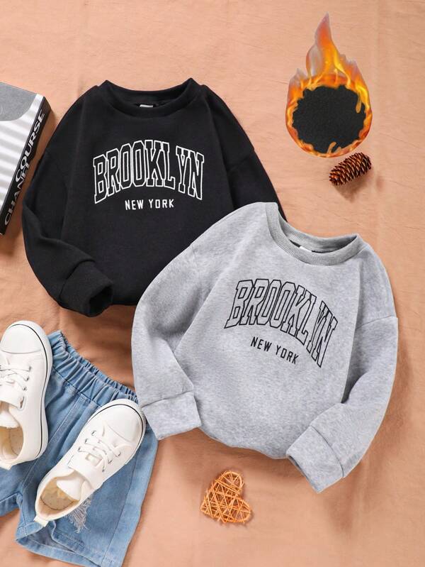 SHEIN Kids QTFun Little Girls' Letter Printed Fleece Sweatshirt