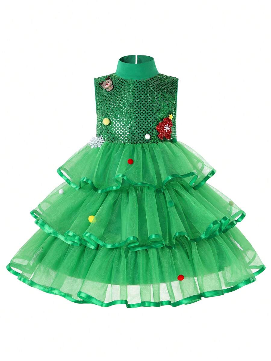 Little Girls' Mesh Splice Layered Hem Formal Dress