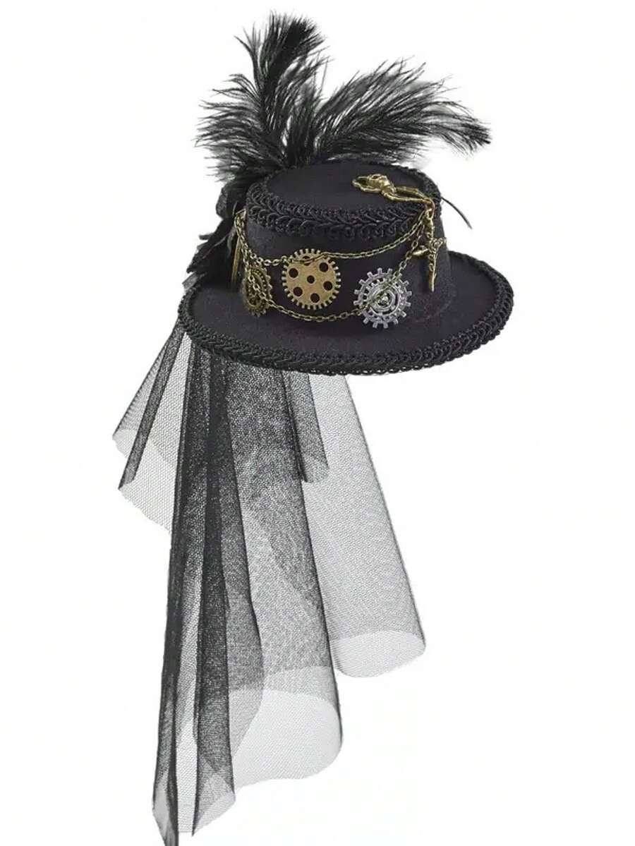 Lolita Lace Feather Gothic Steampunk Gear Chain Headpiece, Performance Prop