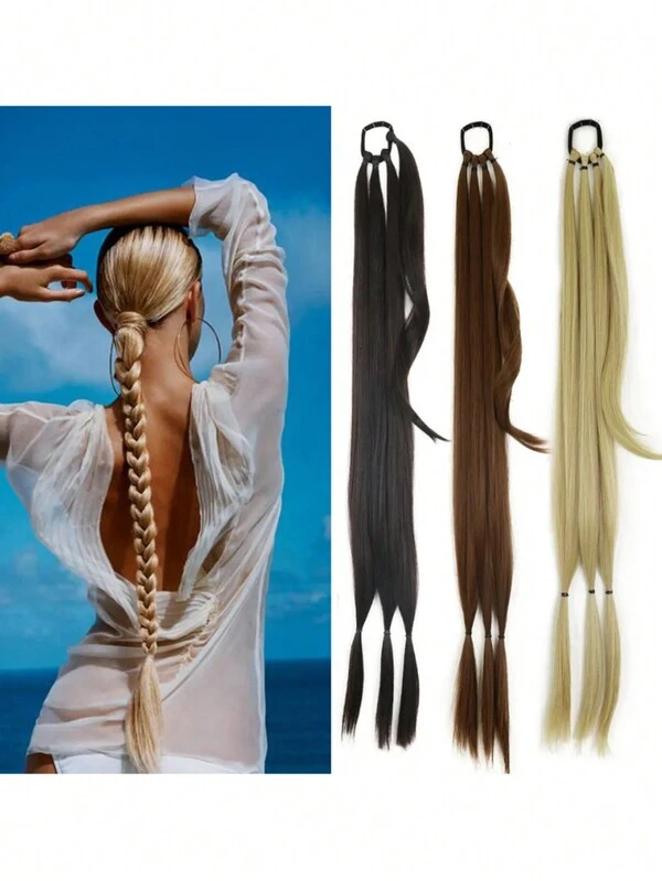 Long Braided Ponytail Extension With Hair Tie Straight Wrap Around Hair Extensions Ponytail Natural Soft Synthetic Hair Piece For Women Daily Wear 26inch 30inch 34 Inch 1 Pcs Light Brown