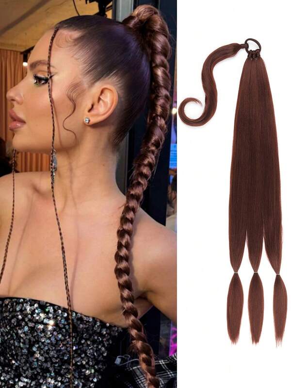 Long Braided Ponytail Extension with Hair Tie Straight Wrap Around Hair Extensions Ponytail Natural Soft Synthetic Hair Piece for Women Daily Wear