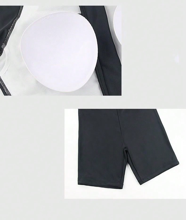 Women's Full Body Long Sleeve Swimsuit With Skirted Bottom, Sun Protection, Nylon & Spandex, Detachable Bra Pads