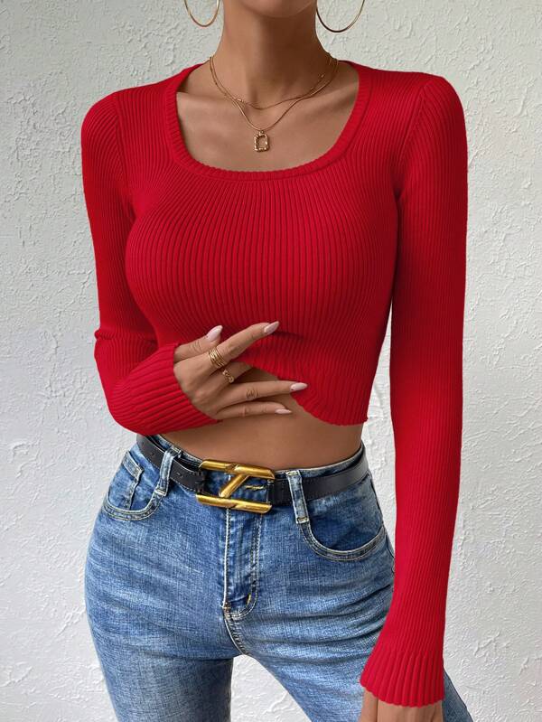 SHEIN Essnce Long Sleeve Cropped Slim Fit Casual Sweater