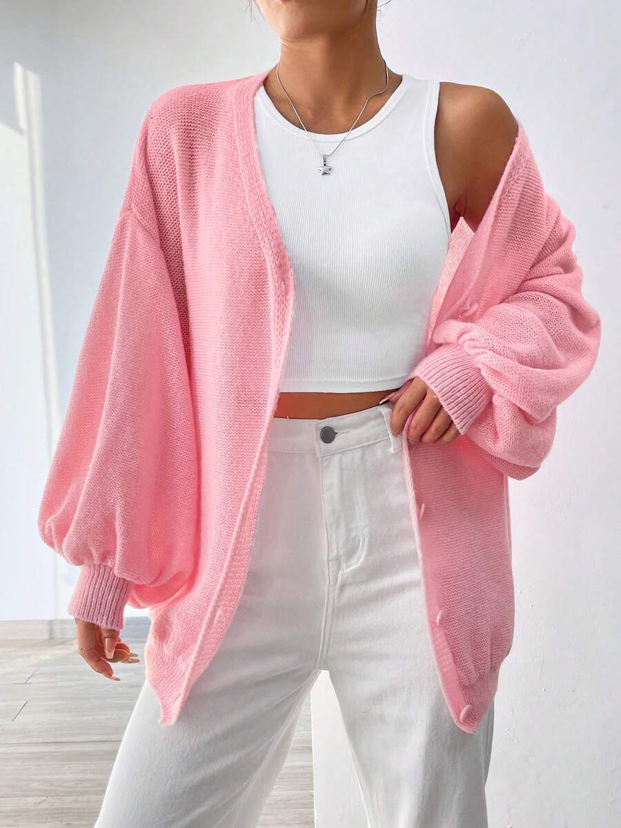 Loose Casual Lantern Sleeve Cardigan