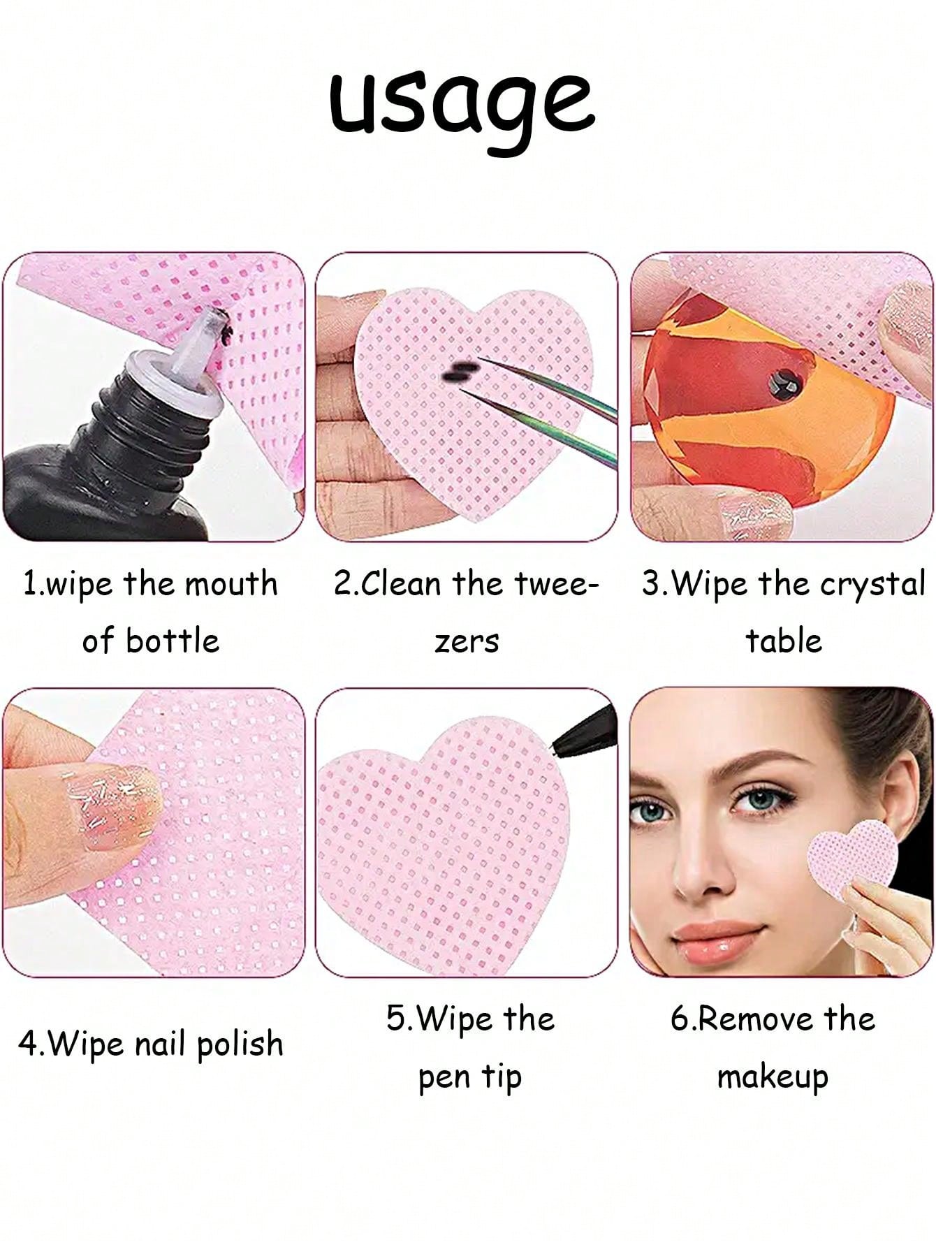 Love Nail Polish Remover, Heart-Shaped Cotton Water Bottle Wipes, Lint-Free Nail Wipes, 200 Pieces Of Pink Eyelash Extension Glue Cleaning Wipes, Super Absorbent Soft Non-Woven Nail Cleaning Pad, Suitable For Eyelash Extension Supplies And Nail Polish Bottles , Nail Salon Supplies (200 Pieces)