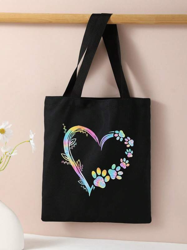 Love Pattern Double-Sided Printed Shoulder Handbag Printed Handbag Casual Travel Beach Bag Large Capacity Reusable Shoulder Shopping Bag Women'S Casual Shoulder Bag Handbag Large Capacity Canvas Beach Bag Handbag Shopping Bag Printed Women'S Grocery Shoulder Bag
