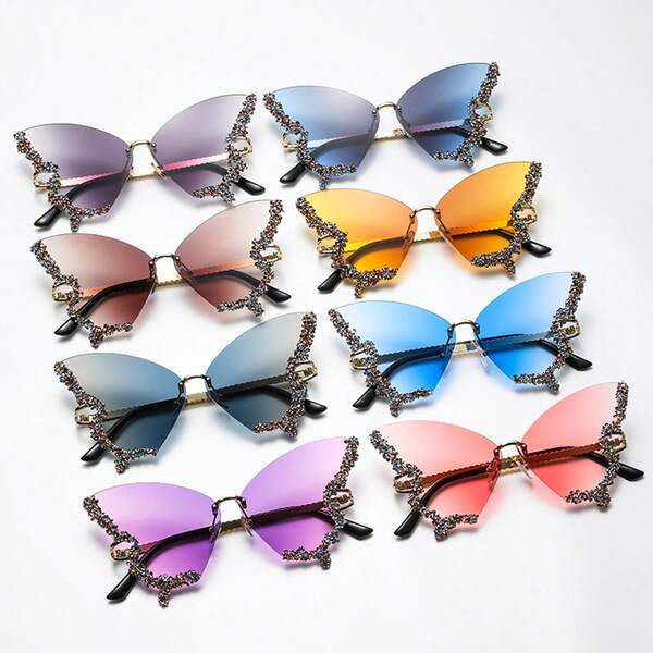 Luxury Diamond Butterfly Sunglasses Women Y2k Brand Vintage Rimless Oversized Party Men And Women Glasses