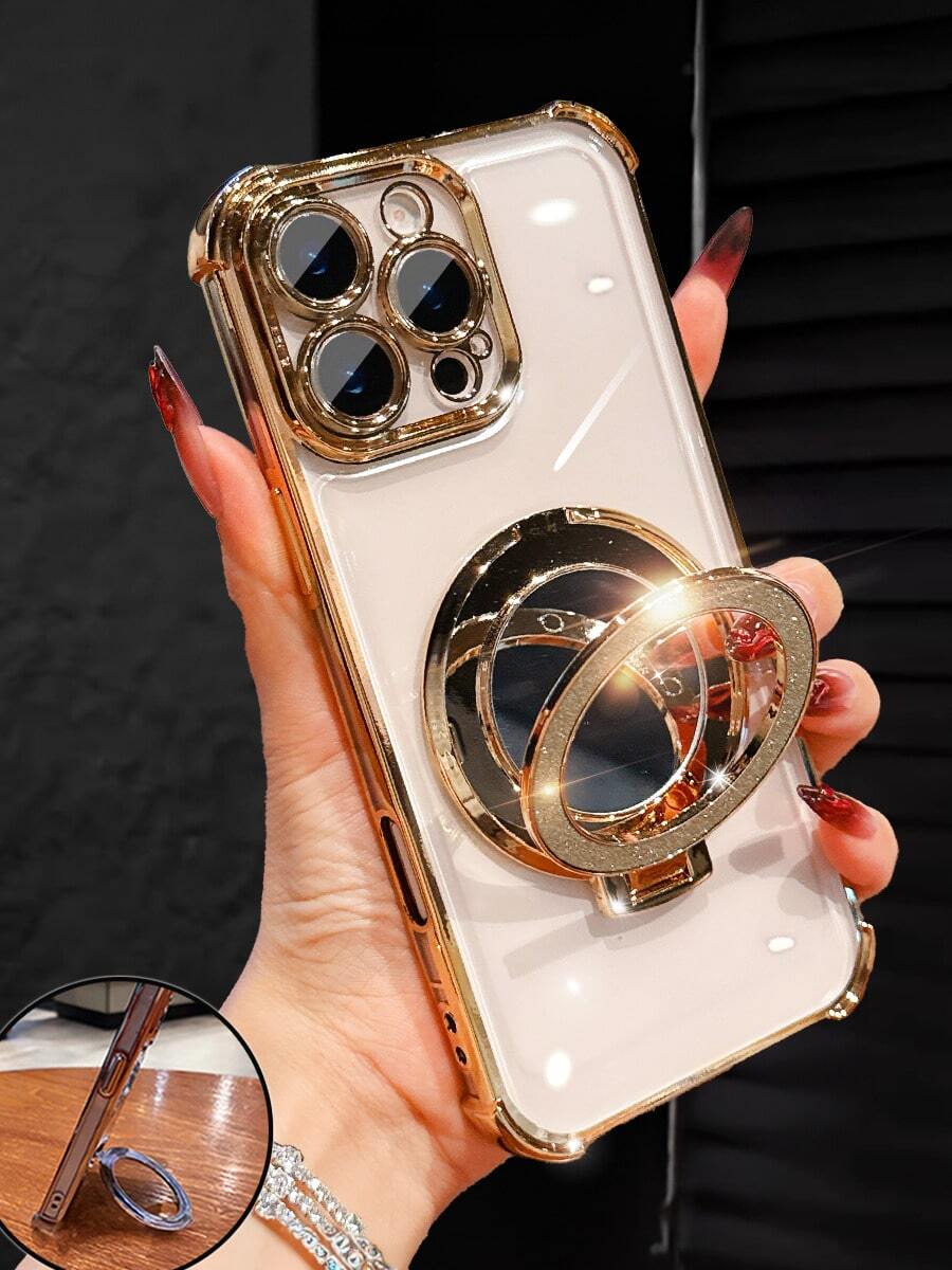 Luxury Electroplated Clear Phone Case With Makeup Mirror Stand, Ring Magnetic Stand Holder, Drop-Resistant, Anti-Drop,Silicone Shockproof Soft Cover Compatible With IPhone 16/16e/16 Pro/16 Pro Max/16 Plus/15/14/13/12/11/X/XS/XR/8/7, Galaxy S25/S24/S23/S22/S21/A55/A54/A53/A52/A35/A34/A23/A16/A15/A14/A13/A12/A05S/FE/Ultra/4G/5G, And For Redmi/Honor/MOTO/OPPO/Infinix