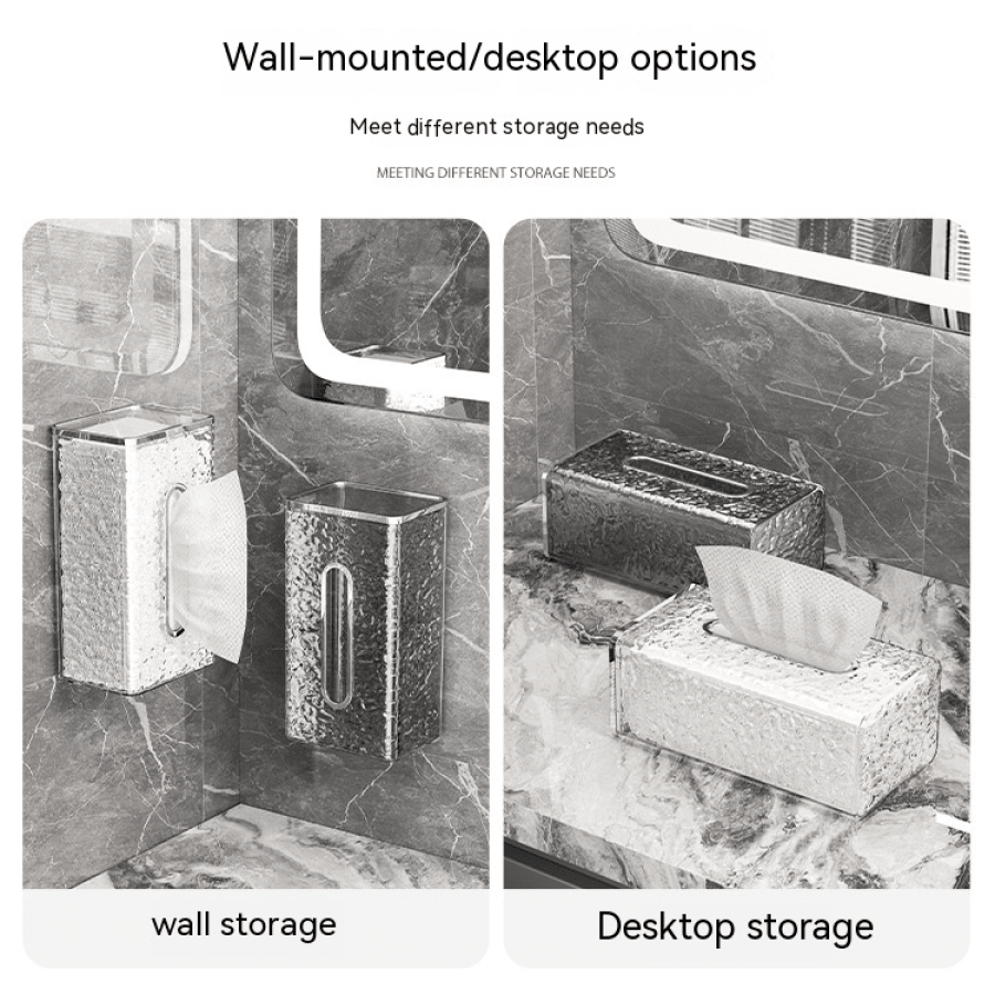 Luxury Glacial Pattern Wall Mounted Tissue Box Cover With Space Rabbit Face Towel Holder, Waterproof No Drilling Toilet Paper Dispenser