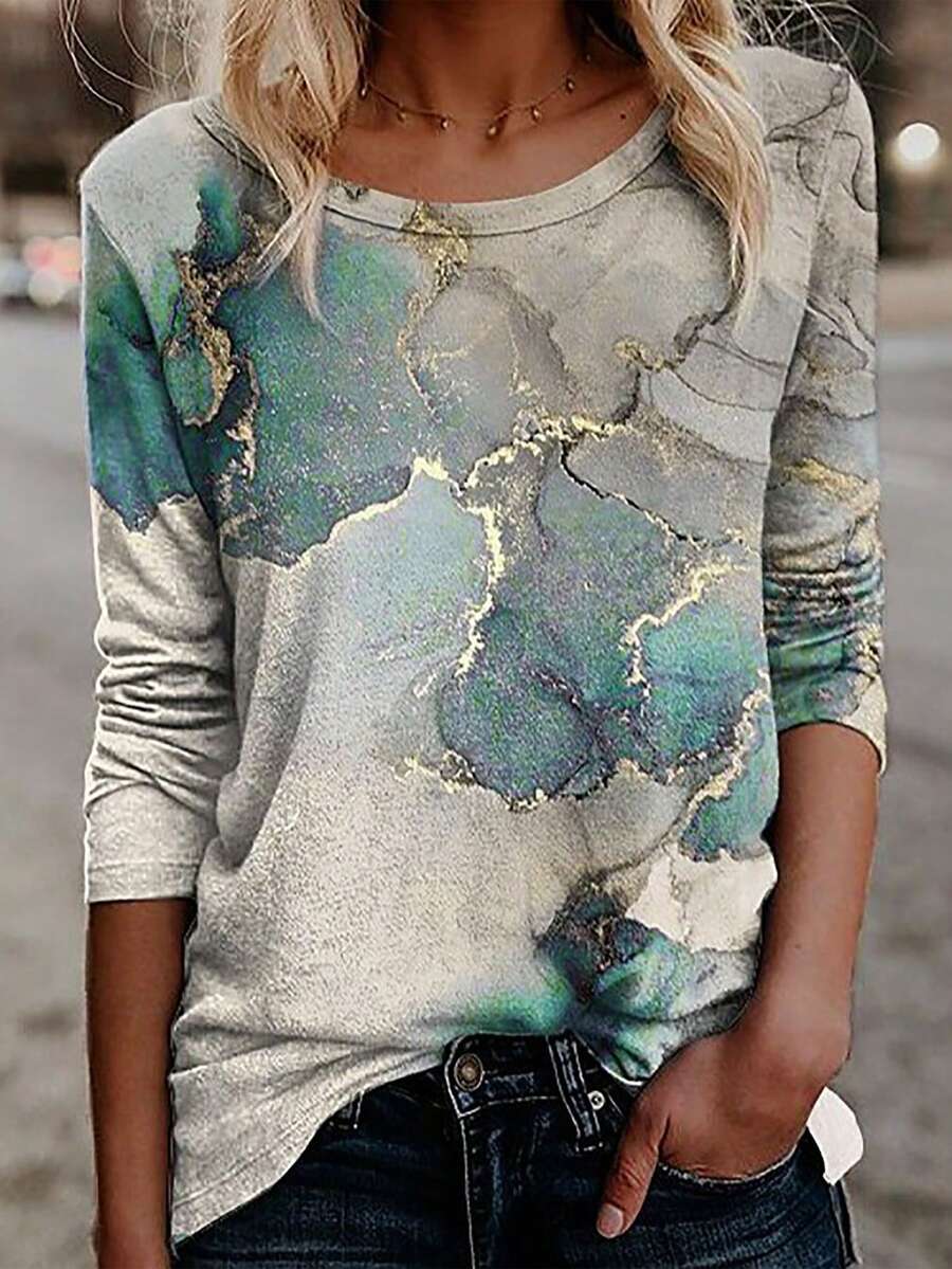 Marble Print Round Neck Tee