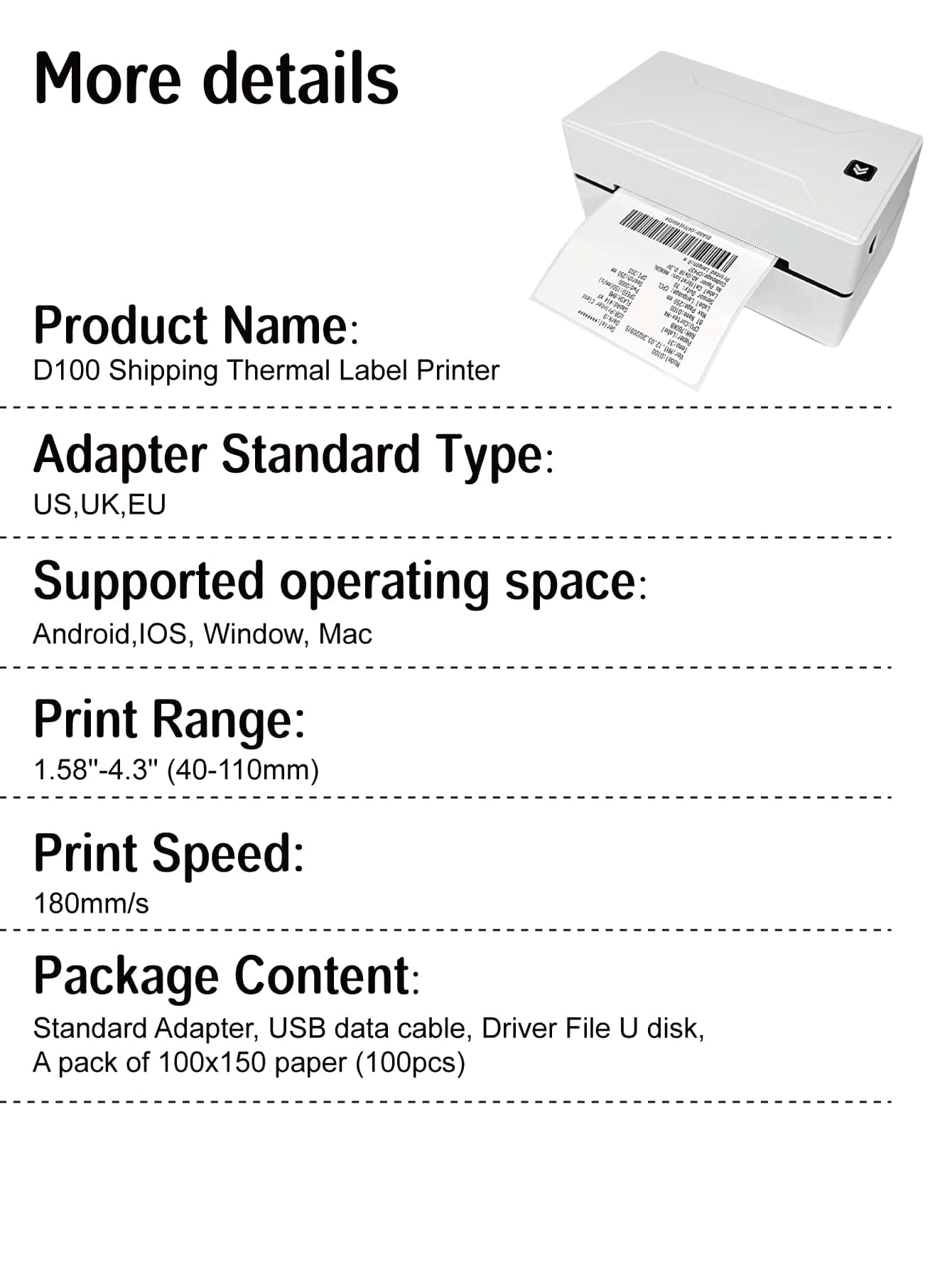 Marklife Shipping Label Printer, 4x6 Label Printer For Shipping Packages, High Speed USB Thermal Printer, Compatible With Android, IOS, Windows, , Supports ShipStation FedEx (White) With 100pcs 4x6 Inch Paper